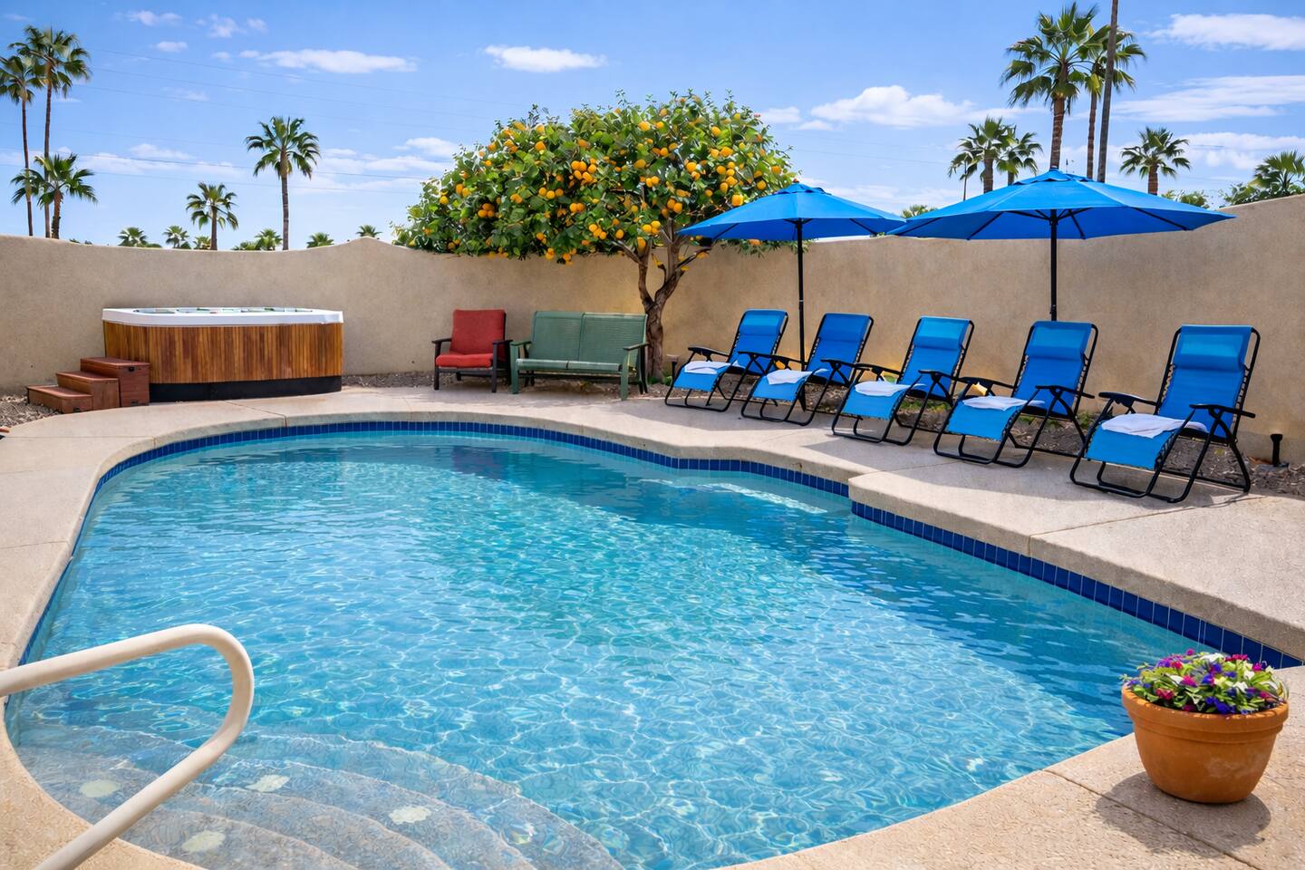 Entertainment & Comfort: Private Pool and Hot Tub 75-inch TVs in the living room and three bedrooms 50-inch TV in the fourth bedroom Spacious great room with electric recliners Guest Access You will have exclusive access to the entire house and the private yard. Self check-in is simple and secure with a 4-digit entry code, which will be provided to you before your arrival. The Neighborhood Nestled in a prime Scottsdale location, you are just minutes away from the area's best attractions. This home offers the perfect base for exploring, whether you're here for leisure, business, or visiting loved ones. Mayo Clinic: 5-minute drive Old Town Scottsdale: 11-minute drive Kierland & Paradise Valley: A short drive away World-class golfing nearby Getting Around Getting here and exploring the area is effortless. The property is conveniently located just a 16-minute drive from Phoenix Sky Harbor International Airport (PHX). We recommend using a personal vehicle or rideshare services to easily access all that Scottsdale and the surrounding valley have to offer.