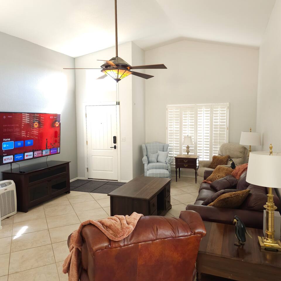Entertainment & Comfort: Private Pool and Hot Tub 75-inch TVs in the living room and three bedrooms 50-inch TV in the fourth bedroom Spacious great room with electric recliners Guest Access You will have exclusive access to the entire house and the private yard. Self check-in is simple and secure with a 4-digit entry code, which will be provided to you before your arrival. The Neighborhood Nestled in a prime Scottsdale location, you are just minutes away from the area's best attractions. This home offers the perfect base for exploring, whether you're here for leisure, business, or visiting loved ones. Mayo Clinic: 5-minute drive Old Town Scottsdale: 11-minute drive Kierland & Paradise Valley: A short drive away World-class golfing nearby Getting Around Getting here and exploring the area is effortless. The property is conveniently located just a 16-minute drive from Phoenix Sky Harbor International Airport (PHX). We recommend using a personal vehicle or rideshare services to easily access all that Scottsdale and the surrounding valley have to offer.